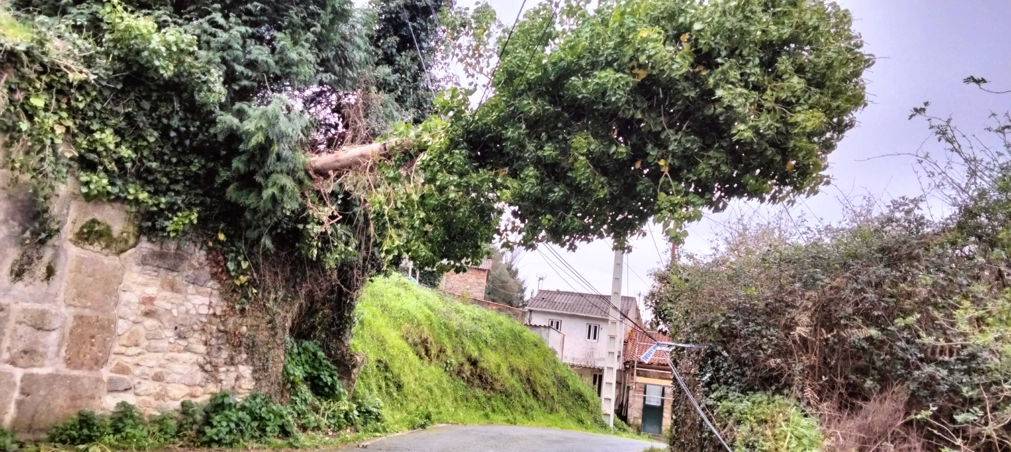 Recibimos várias queixas de desperfectos no cableado polas recentes e continuas tormentas. O fortes ventos descolgaron un poste na zona de Pename, e tamén causaron outros desperfectos en Albarón