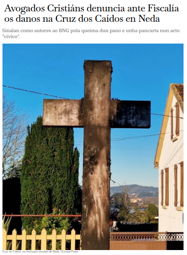 En fechas recentes os xulgados de Ferrol veñen de desestimar un recurso contencioso-administrativo interposto contra a Corporación de Neda pola decisión de retirar simboloxía fascista, en concreto a chamada Cruz dos Caidos.