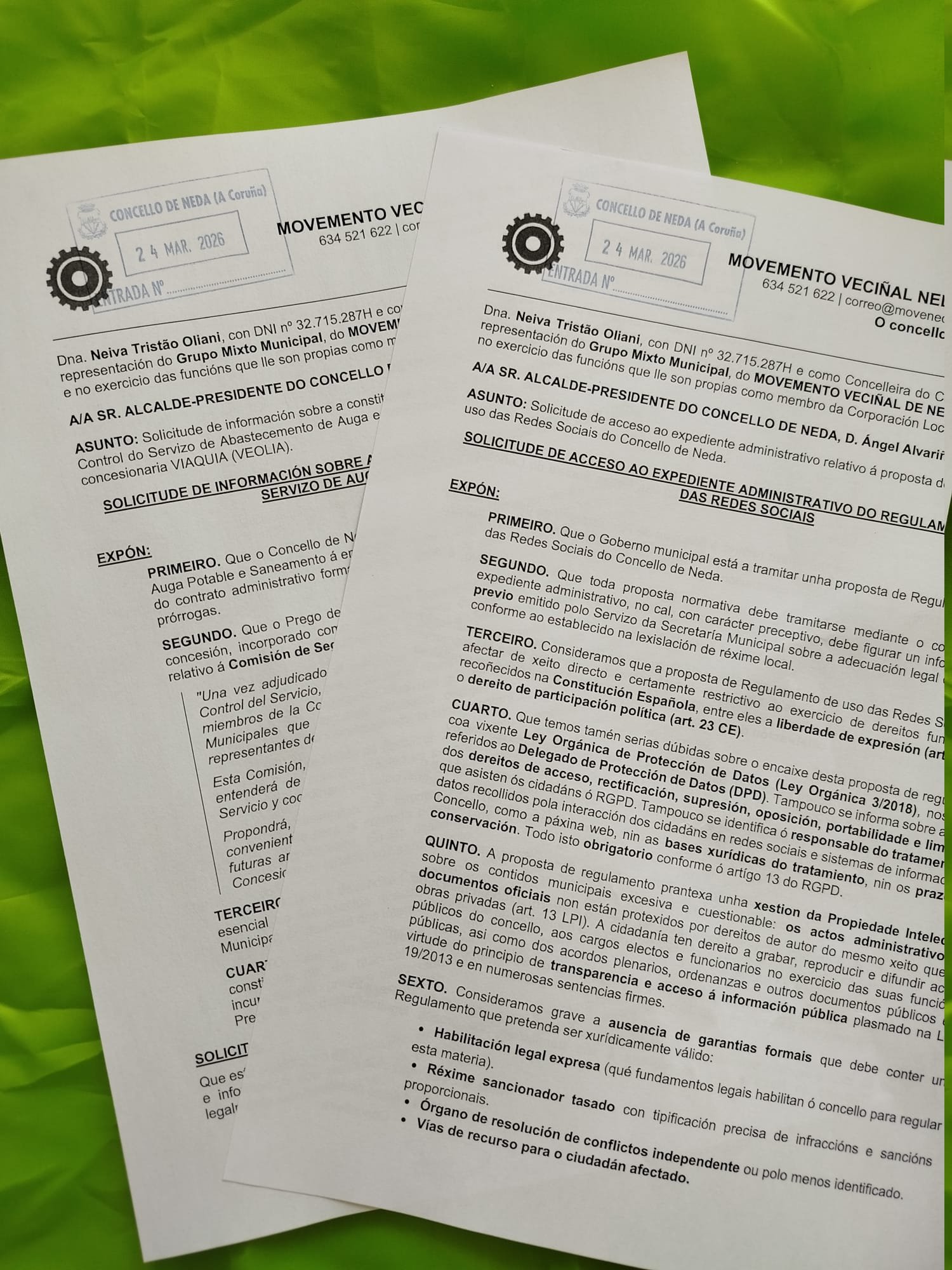Neda non é o cortijo de Alvariño. Dende MOVENEDA esiximos ao goberno municipal que cumpra coa súa obriga legal de responder ás comunicacións rexistradas e que respecte o papel da oposición como garante da transparencia e do control democrático.