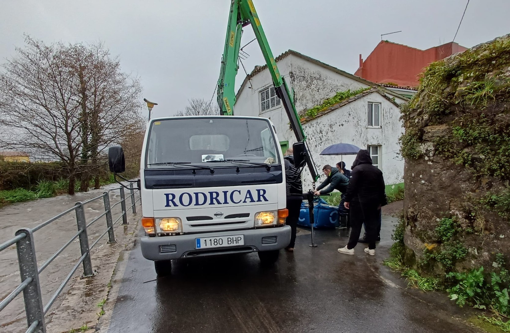 O goberno de Neda procedeu a cortar os accesos rodados ao citado lugar, e alertou a Augas de Galicia para que retirara a máquina escavadora que traballa nas obras complementarias da retirada do azud do muíño do Carballo, ante o risco de que a leve a corrente.