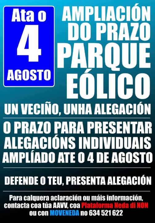 Se tedes calquera dúbida, acodide a vosa AAVV, a Plataforma NEDA DI NON ou a Moveneda no tlfno. 634 521 622