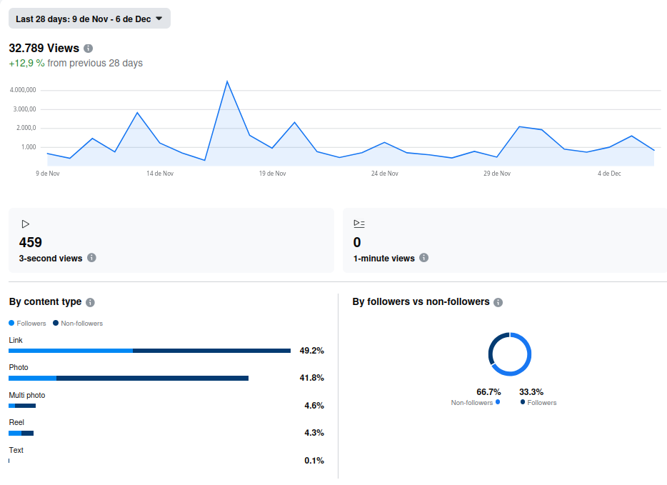 Stadisticas de Facebook Analytics dos últimos 30 días