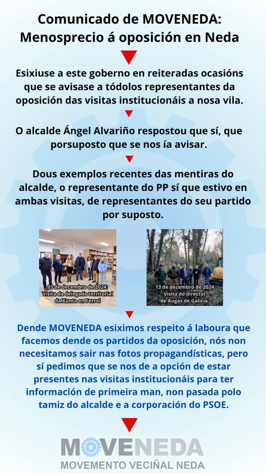 A visita do director de Augas de Galicia a Neda volve desenmascarar a faciana antidemocrática e a absoluta carencia de palabra do alcalde de Neda, qu...