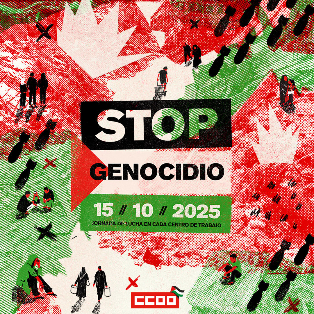 O vindeiro 15 de outubro, está convocada en todo o estado unha xornada de movilizacións e folgas contra o xenocidio e o apartheid en Palestina.