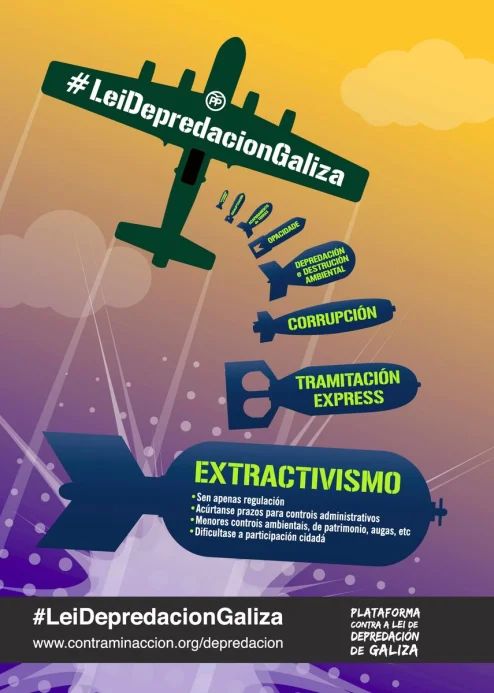 Hoxe houbo concentracions as en todalas cidades galegas, para protestar por esta lei que impulsa o Partido Popular de Galicia que pretende coller o noso territorio e regalarllo aos lobbies mineiros, eolicos e do eucalipto.