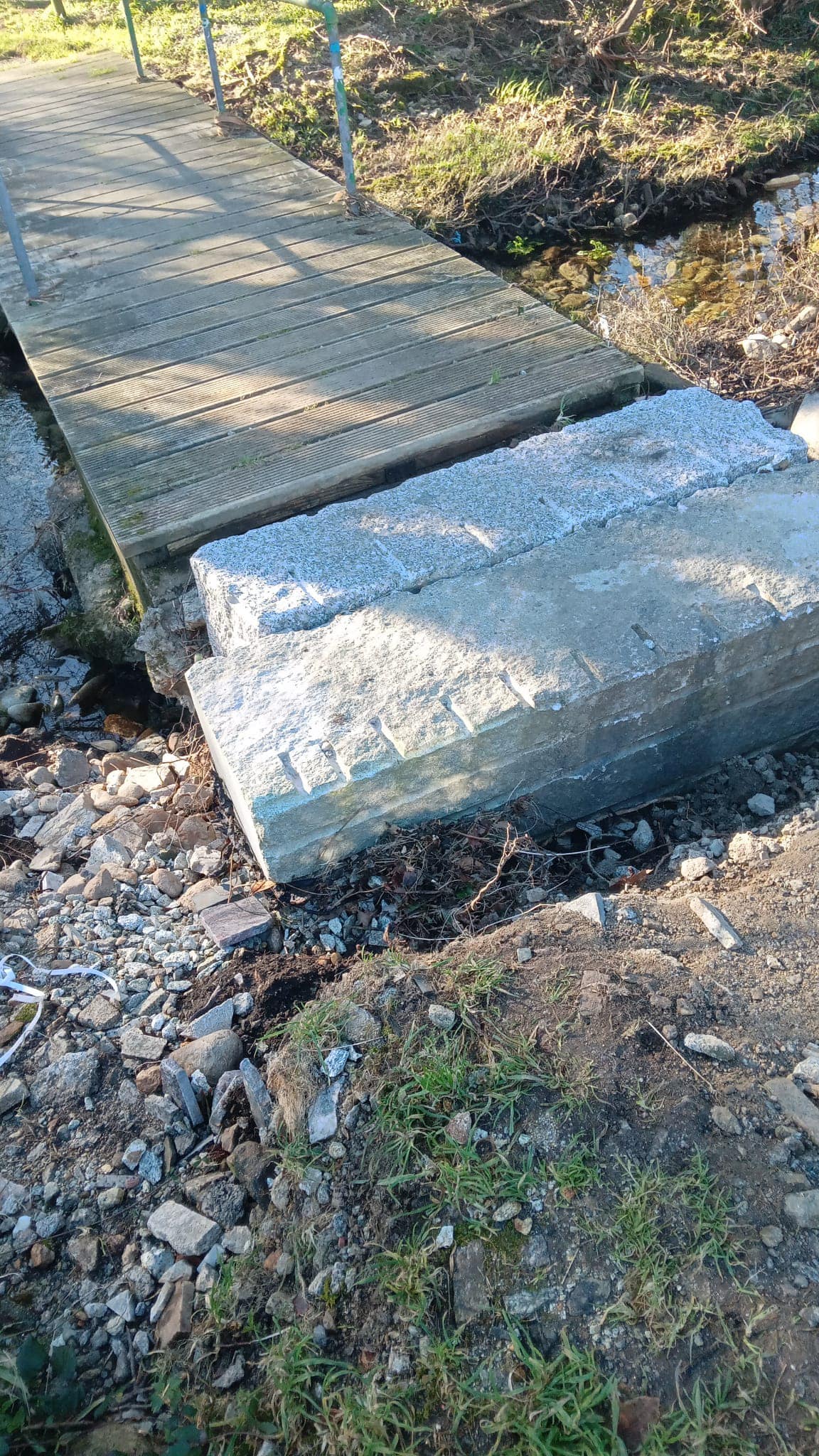 Hoxe vos traemos outras das habituais chapuzas da Concellería de Obras. A Ponte do paseo do río está recén "amañada" según nos dixo en Comision de Obras o concelleiro Ángel García Cordero.