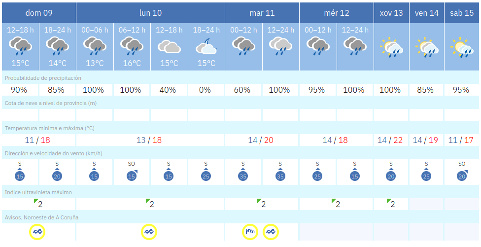 Previsión da AEMET para a semana do 10 ó 15 de novembro