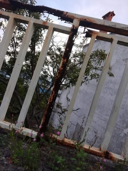 Ademáis disto, uns 4 metros deste tramo de varandas foi retirado polo concello e nin sequera se colocaron unhas vallas auxiliarias que impidan unha posible caida. Un auténtico risco para os peóns.