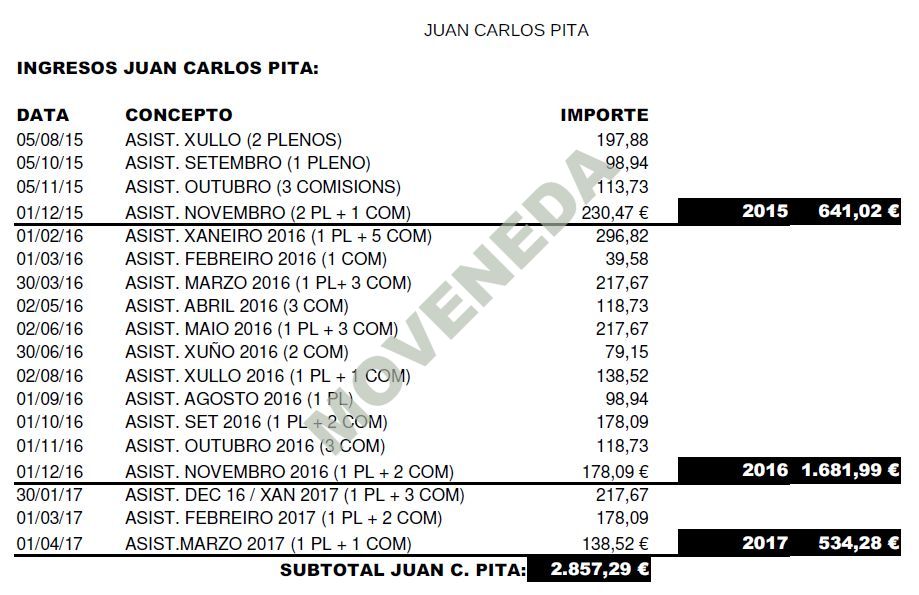 Lembrade que ao ter dous concelleiros, MOVENEDA e Grupo Municipal, e por elo, e pra o seu funcionamento percebe 150€ mensuais que se liquidan trimestralmente.