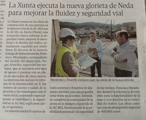 A que vai ser a nova concelleira de Moveneda, Neiva Tristão, asistiu ontes a visita do director da Axencia Galega de Infraestructuras as obra da rotonda de Xubia.