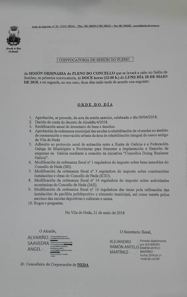 Publicamos o pleno ordinario do Concello de Neda correspondente o 8 de abril de 2018, referido a aprobacion dos presupostos municipais do exercicio 20...